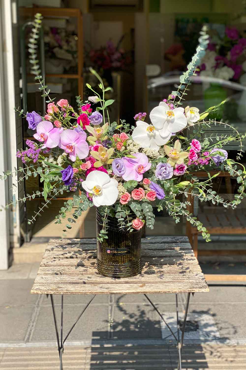 دیزاین ۶۰ سانت یاسی بنفش با ارکیده های یاسی