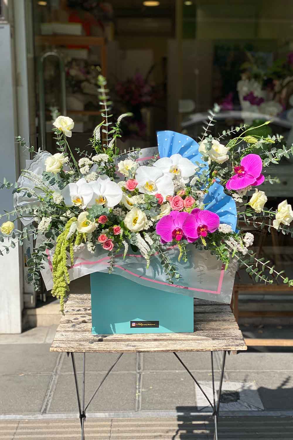 دیزاین ۶۰ سانت با ارکیده های بنفش و سفید نلی