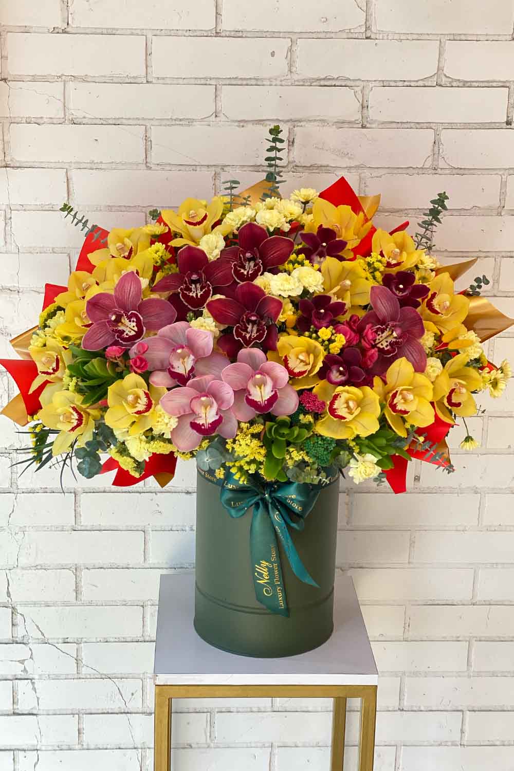 باکس ۷۰ سانتی تمام ارکیده سیمبیدیوم نلی انتخابی لوکس، چشمگیر و بسیار تاثیرگذار برای هدیههای خاص و مناسبتهای مهم است.