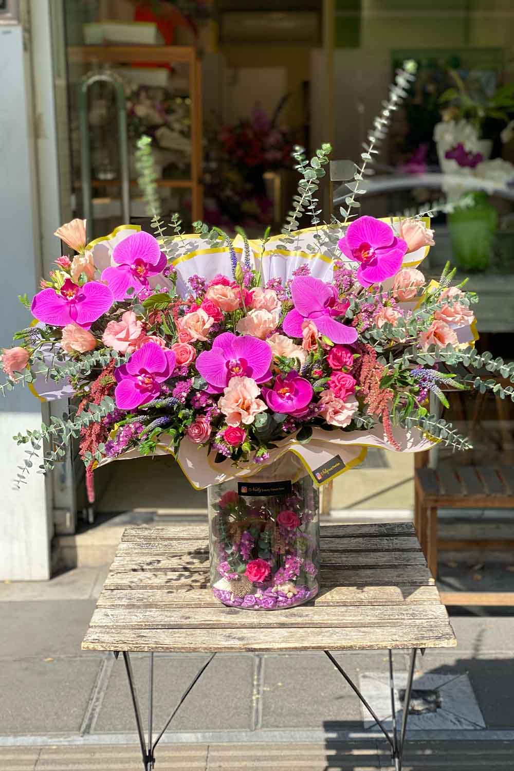 دیزاین مدرن ۷۵ سانت با ارکیده های بنفش