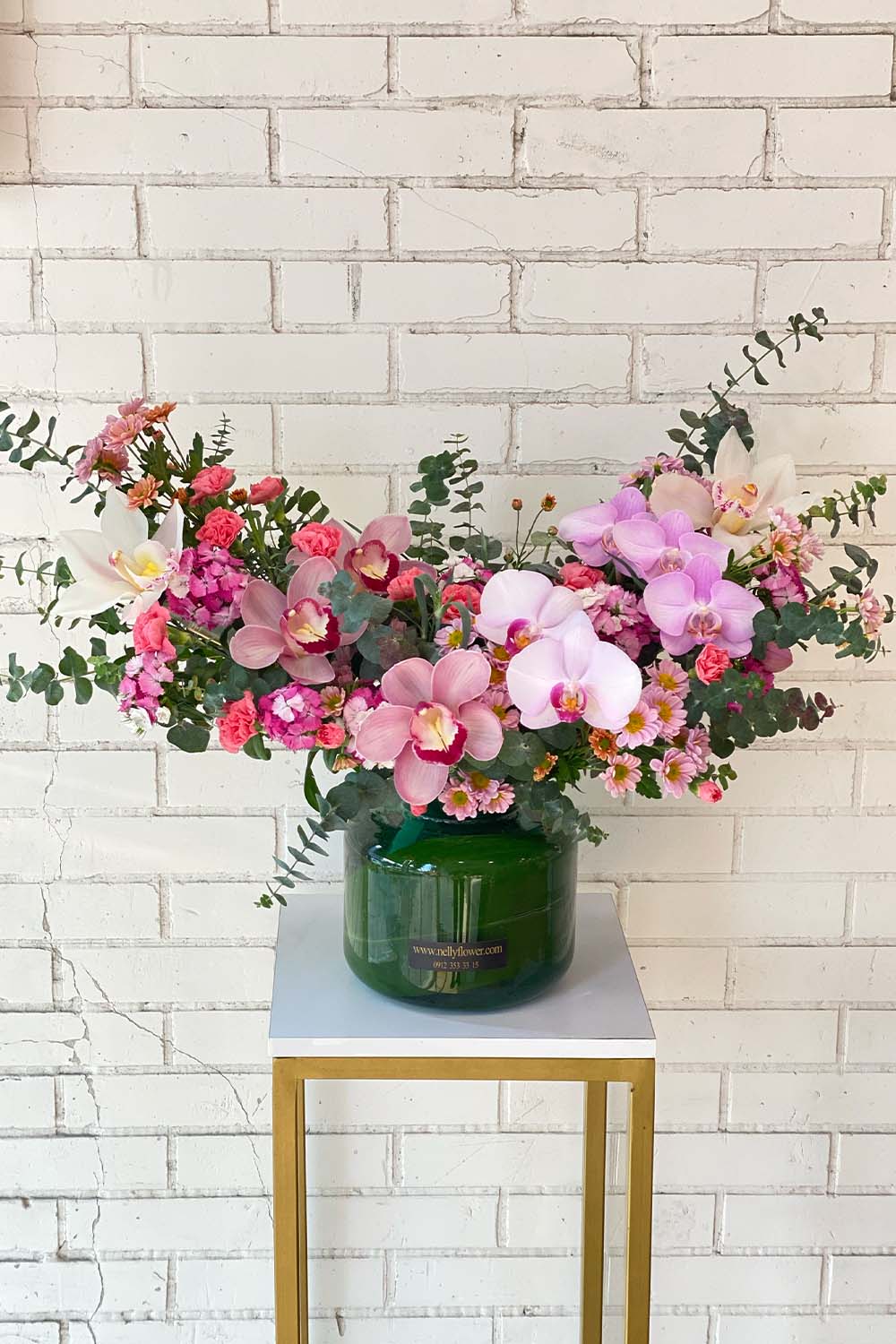 • گلدان شیشه ای دیزاین ۴۵ سانت نلی با ارکیده