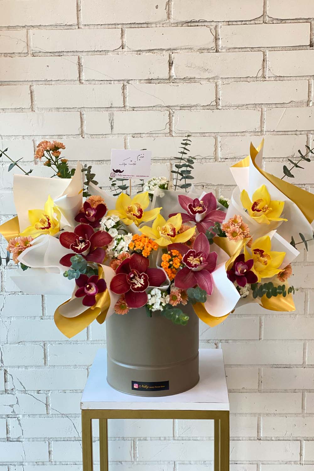 در این دیزاین از ارکیدههای سیمبیدیوم باکیفیت و ماندگاری بالا استفاده شده که با چیدمانی حرفهای و حجم مناسب، جلوهای شکیل و چشمنواز ایجاد میکند.