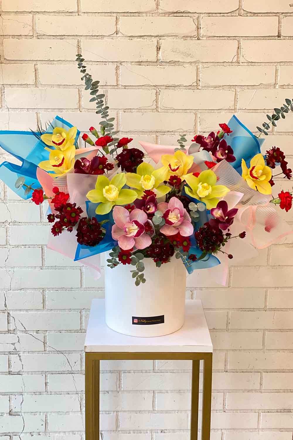 اگر بهدنبال خرید آنلاین باکس ارکیده لوکس هستید، دیزاین ۵۵ سانت نلی با ترکیب رنگهای ظریف و گلآرایی حرفهای، انتخابی مطمئن برای شماست. تمامی سفارشها با دقت بالا آماده شده و در کوتاهترین زمان ممکن ارسال میشوند.